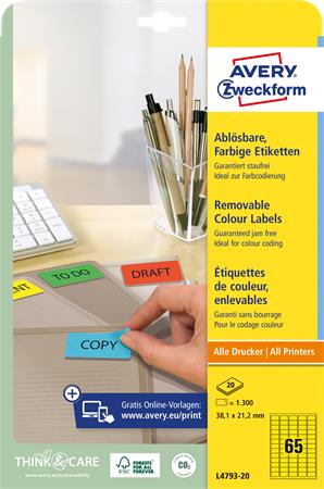 Etikett, univerzális, 38,1x 21,2mm, eltávolítható, kerekített sarkú, AVERY ZWECKFORM, 1300 etikett/csomag, sárga